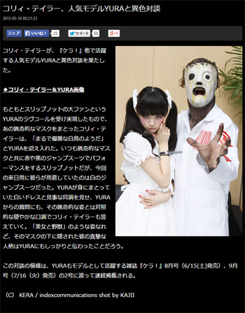 スリップノットの大ファンを自認し2013年にコリィ・テイラーと対談をしたYURAが、2014年はクラウンとの対談を行った。
