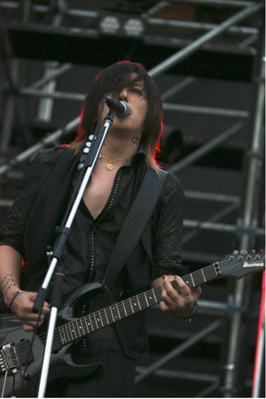 そして今度はその天空へと突き刺すように虎の歪んだギターがうねりを上げ、「富士急、散れんのか?」という将のアジテーションから始まった「闇ニ散ル桜」では、雨具を脱ぎ捨てるファンが続出。気温は低めだったにも関わらず、メンバーのリクエストに答え、上半身ビキニ姿のファンがあちこちに出現した。