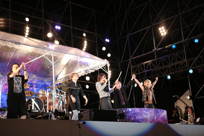 将(Vo)がオーディエンスに優しく語りかける。あの発表以来、彼らをとりまく様々な憶測、バンド解散の噂。そのすべてを払拭していくような、溢れんばかりのAlice Nineの愛情と希望の光に包まれたライブだった。その愛情に応えるかように、降り続けた雨がぴたりと止んだり、富士山が顔をのぞかせたり、遊園地の打ち上げ花火までもがナイスなタイミングで上がったり……あるものすべてが彼らに味方。すべてがAlice Nineの記念日と新しい旅立ちを祝福した。