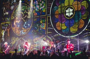e-ZUKAが、MUCCとの対バンが決まってから過去に遡ってMUCCの音を聴き返し、「昔は歌謡テイストなメロを持つバンドだったんだね」とMCでトークをしたことと、e-ZUKAのギタープレイを受け、ルーツはメタルだと察したミヤは、この日のセットリストにあったパンク要素の強い「ハニー」を「娼婦」に急遽変更して彼らに応えるという粋な絡みを見せたのだった。また、この日はムックルーが発信した咄嗟の企みが、ライヴに大きな感動を与えていたのも印象的だったのだ。KBS HALLのステージの背景がステンドグラスだったこともあり、ムックルーがこの日のラストに「MOTHER」をやってほしいとメンバーに提案し、ミヤがその意向に共感し、急遽セットリストを「MOTHER」へと変更したのだ。この「ARMAGEDDON」ツアーでは、一貫してバックに“ARMAGEDDON”という逹瑯が殴り描きしたというツアータイトルのロゴがプリントされた、大きな幕が一面に掲げられていたのだが、この日、その大きな幕が「MOTHER」のイントロと共に一気に落ち、巨大なステンドグラスがそこに出現したのである。背景一面に広がったステンドグラスをバックに届けられた「MOTHER」は、素晴しく神秘的だった。