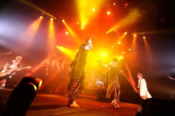 まったく異なるスタイルのヴォーカリストであるマオと逹瑯の唄に、改めてこのジャンルの振り幅の広さを突きつけられた気がした。この日の逹瑯は、前日の無念もあってか、素晴しい挽回を見せた。そんな逹瑯の唄の変化もあってか、彼らMUCCはこの日、このツアーでも3本の指に入る最高のライヴをした。そこには、同世代バンドとして、良きライバルである対戦相手だったからこその熱い闘志が存在していたように思う。そして最後に、対バンツアーでは初となったアンコールを設け、全員ステージに登場し、互いの楽曲をセッションし、唄い合うというリクリエーションタイムをファン達にプレゼントしたのだった。意識してのことではなく、ごくごく自然に向き合ったことで生まれたライヴであったと思うが、MUCCの4人には、この日のライヴの感覚を、是が非とも代々木第一のステージへ持ち込んでもらいたい。