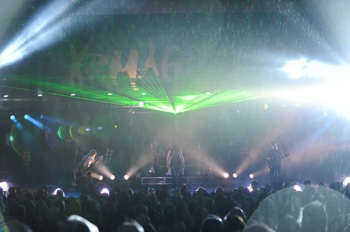 そしてその翌日の8月20日。同じくZepp Nambaの地で、同じ事務所に所属する同世代バンドのシドと対戦した。MUCCの楽曲「葬ラ謳」をSEに登場したシドは、MUCCとの対バンを考え、敢えて旧曲と激しめな曲を多めに選曲したセットリストで挑んできたのである。この日は『ニコニコ動画』での生中継が入っていたこともあり、両者とも対バンという戦いももちろんのこと、不特定多数のユーザーに自分達の存在をアピール出来る場が設けられていたこともあり、さらなる気合いを持ってライヴに向った。