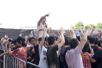 サークルモッシュが出来上がり、カタコトで伝えた言葉で、リフトが完成し、SHUNが肩車され、客席を縦横無尽に走り回るのです。