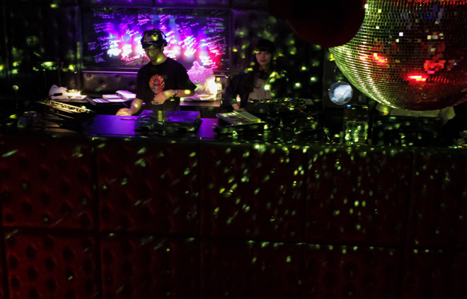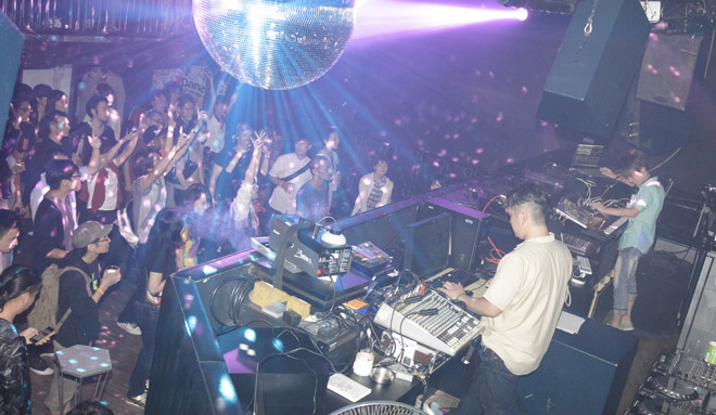 会場に入ると、フロア後ろにはiPhoneに繋がれたプロジェクターから、縦長の大きな「網戸」にaDanzaのキャラクターが投影され踊っている。アルパカと力士が並んで踊る絵はシュールさ満点だ。スタッフが「試遊できます」とパネルを掲げてアプリの紹介をしており、興味深そうに足を止める観客も多く見られた。また、DJブース後ろやフロア横のスクリーンにもaDanzaのデモンストレーションが映し出されている為、常にキャラクターが音楽と共に踊っている形になっていた。Carpainterのプレイから始まったイベントは時間と共にだんだんと人が増えてきた。Licaxxxがプレイする骨太なビートがフロアを延々と揺らした後、徐々にトライバルなリズムが高まっていき、Seihoがブースに登場してスイッチ。サイケなTシャツ姿でいきなりスペイシーに場を転換。とたんに腕を振り上げて踊り出す観客も。激しくアクションしながらプレイするSeihoの後ろには力士が3人並んでダンスする映像が!会場では実際にDJのプレイにaDanzaのキャラクターが反応しているわけではないのだが、時折シンクロして見えるのも面白い。最後はエモさ爆発のクラブ・アンセム「I Feel Rave」で出番を終えた。