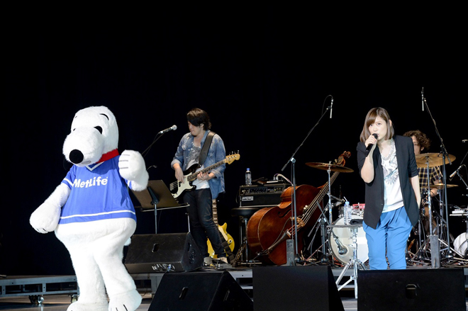 絢香が、メットライフ生命保険の有人飛行船「スヌーピーJ号」のデザインリニューアルを記念したイベント「SNOOPY J Special Night」を、9月30日(火)、舞浜アンフィシアターで行った。