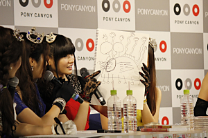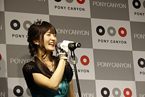 後半は待ちに待ったライブパート。冒頭、センター渡部の口から「これから歌っている間、マイクから口が離れていても美声が聴こえる魔法の時間が訪れます。」と驚きのアナウンスがされると会場は大きな笑いに包まれたものの、デビュー曲の「地下すぎてアンダーグラウンド」、メンバー曰く「これは結婚式でも歌える」というミディアムナンバー「青春ラプソディ」、そして『musicるTV』のMCである前山田健一(ヒャダイン)作曲の「ムーンライト・ラビリンス」の3曲を披露し、客席でも多くのペンライトが輝く盛り上がりをみせた。