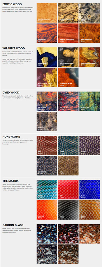オフィシャルサイトをみると、木材を使用したシリーズのみならず、どのような素材なのかもわからない不思議で美しいPRESTIGEモデルが多数掲載されている。