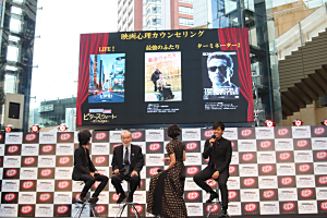 トークセッション後には映画パーソナリティのコトブキツカサが登場し、ゲストの好きな映画3本から分析した映画心理カウンセリングを発表するコーナーも。最初に『アンコール!!』『恍惚の人』『最強のふたり』を選んだ本仮屋には「共通点として「誰かを守りたい」願望がある」「恋愛映画が入ってないことから、仕事を優先して周囲の期待に応えたいという気持ちが強い」という分析が飛び出し、本仮屋も大いにうなずいた様子。続いて『乱暴者(あばれもの)』『北国の帝王』『キャット・バルー』という渋いチョイスを取ったミッキー・カーチスには「古い作品で固める人は自分の考えをしっかり持っている。女性に関しては昔付き合っていた女性を忘れられないタイプです」という診断が下され、「俺(古い女性は)ガンガン忘れちゃうけどなあ」というミッキーからの軽快な返しがありつつもなかなか納得の結果となった。最後に『LIFE!』『最強のふたり』『ターミネーター2』を選んだKには「一本目が最新作ということで、いい意味で流行に敏感。素直な方ですね」「正義感が強い。何か、誰かを守りたい」という診断が。ミッキーがすかさず「奥さんだな」とKが今年8月に結婚式を挙げたばかりの相手・関根麻里の存在を匂わせ、これにはKもはにかんだ笑顔で答えていた。