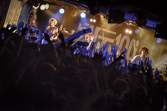 まず、この日最初の熱狂を新宿LOFTにもたらしたのは、エモーショナルロックの若手バンド、BLUE ENCOUNT。6月の<快翔の宴>出演時に勝手に『ウォール・オブ・金八』なる芝居を行った彼らは、MCで「もう呼ばれないかと思ってました」と笑いを誘いつつ、「JUST AWAKE」や「HALO」、新曲「MEMENTO」と、重厚で激しいキラーナンバーを連発し、何度もフロアにモッシュを起こす。最後は、バンドにとって最も大切な曲のひとつ「HANDS」でフィニッシュ。声を枯らしながらも、<いつだって君のその手は いつでも世界を変えれるよ>と歌い切った。