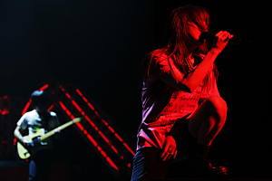 ライブ後半戦に入ると、「染まる夢」「舌打ち」「遊園地」といったロックテイスト満載の楽曲に突入。ステージ後方のビジョンには歌詞をモチーフにした映像とともに激しく歌うaikoが映し出され、圧倒的な迫力で会場の熱は一気に最高潮に。