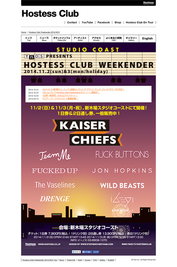 願わくば2015年に向け皆様のご支援を賜りたく思います。そしてこれから続いていくHostess Club Weekenderで、また皆様とより素晴らしい音楽体験を共有できることを期待しています。