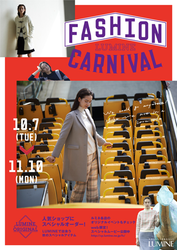 ルミネが、秋冬のファッションをトータルに楽しめる企画<LUMINE FASHION CARNIVAL>を、2014年10月7日(火)~11月10日(月)の期間、ルミネ12館とネット通販「アイルミネ」(https://i.lumine.jp/)にて開催している。