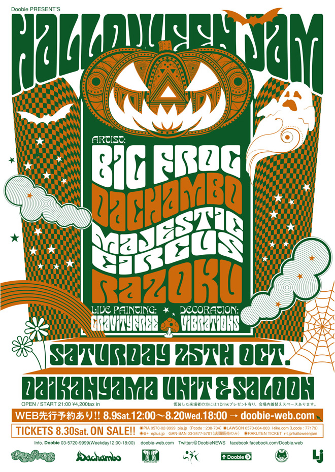 チケットぴあ(Pコード:238-734)/ローソンチケット(Lコード:77179)/イープラス /GAN-BAN(03-3477-5701 http://ganban.net/)/楽天チケット(http://r-t.jp/halloweenjam)/UNIT(03-5459-8630)/iFLYER e-Ticket(http://iflyer.tv//event/203047)