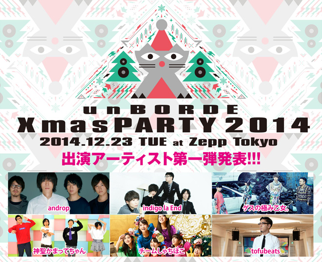12月23日(火・祝)Zepp Tokyoにて開催される、音楽レーベルunBORDEによる恒例ライブ・イベント<unBORDE クリスマス・パーティー 2014>の第一弾出演アーティストが発表となった。