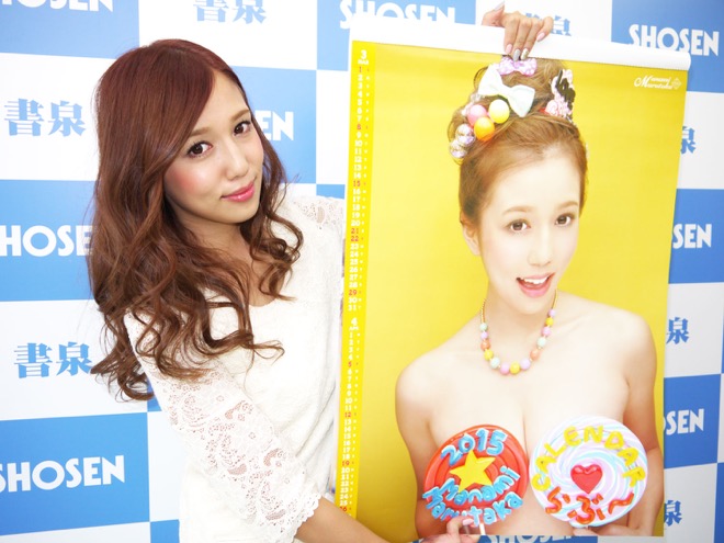 10月18日、秋葉原の書泉ブックタワーにて、グラビア、タレント、女優、DJと様々な分野で活動する丸高愛実が、2015年版のカレンダーの販売イベントを行なった。