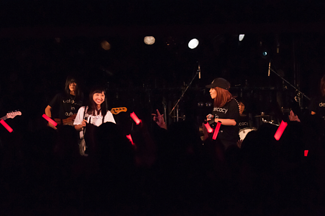 アンコールでは、なんとnaoが“アフィリア・サーガ”の制服で登場。アフィリア・サーガは2014年にStand-Up! Recordsへグループ移籍するまではレーベルメイトであった関係もあり、観客にとっては大きなサプライズとなった。「わたしが(制服を)着てるってことは、もちろん…」と、naoの言葉に観客も期待が高まる。ファンと一緒にmarinaを呼び込み、制服姿のmarinaも登場した。「普段、こういう服を着ないから、本当に恥ずかしい…(笑)」とmarina。「似合ってるよー!」とファンの言葉にnaoもmarinaも照れ笑いをしていた。制服姿のnaoとmarinaは、アフィリア・サーガの楽曲「La*La*Laラボリューション」を披露し、アイドルが歌うときとはまた違った楽曲の良さを引き出していた。