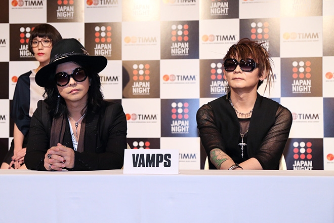 VAMPSのHYDEは、「VAMPSは自分たちのやれる限りのことを今、やっている最中なんですけど、自分たちだけだとね、限界あるなって思っています。まだまだ方法はあるのかもしれないけど、今日みたいな、すごく自分たちにも追い風というか、背中を押してくれる部分で、世界に向けて羽ばたけるので、この場にいられることはすごく嬉しいです。来年からVAMPSは準備が整ったという感じなので、やれる限り、海外にも進出していきたいと思うので、その時はぜひ、みなさんの力を貸していただけたらいいなと思います。よろしくお願いします。」と、海外メディアの期待感を煽った。