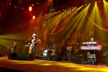 続いては、今回初参加の原宿系ガールズ・バンドSilent Siren。メンバー全員が読者モデルでもある抜群のルックスとお洒落センスを活かし、超キュートなアダムスファミリー姿で登場。「ぐるぐるワンダーランド」では、アダムス一家の長男、パグズリィに扮したキーボードのゆかるんがセンターステージまで走り出てキュートに客席を煽るなど、男性率の高いステージに可憐な風を吹き込んだ。