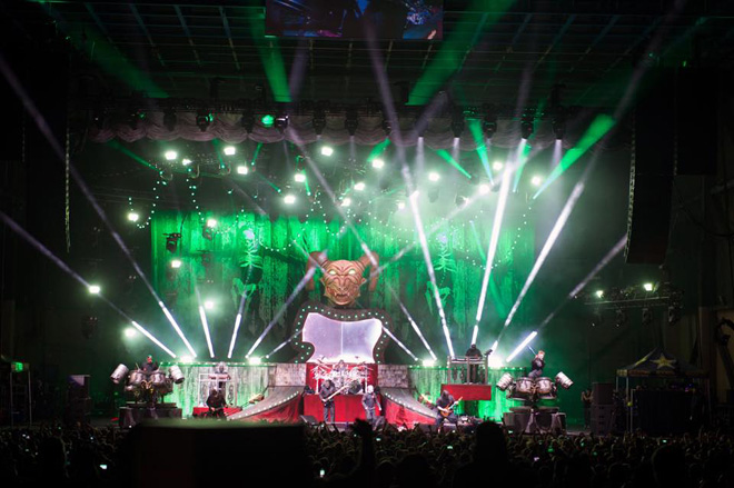 バンドはこの日、「People = Shit」「Eeyore」「Disasterpiece」「The Negative One」「Sulfur」「Eyeless」「Wait and Bleed」「Dead Memories」「Before I Forget」「Three Nil」「Purity」「Custer」「Duality」「Spit It Out」「Surfacing」の15曲をプレイ。