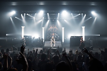 今回のツアー中に緊急リリースしたシングルからのナンバーであり、ツアーでは幾つものクライマックスも作り出したナンバーだ。ツアー序盤で披露したときよりプレイは研ぎ澄まされ、すっかりキラーチューンの1つに成長。これを生で聴きたかった、という海外からのファンもいたほど。歌いながらツアー中の様々な思い出もよぎったのか、あるいはツアーの達成感を早くも味わっているのか、やや目を潤ませているZINでもある。が、楽器陣は次から次へとエキサイトメントを作り出し、ライブ自体をさらに高い次元へと持っていく。見た目は貴公子や姫のようなメンバーだが、コイツらはやっぱ化け物である、ミュージシャンとして。そしてラストを飾るのは「Classical Element」だ。12分を超える大作ナンバーの中に、これでもかと聴かせどころを盛り込み、シンフォニックメタルの真髄を発揮。オーディエンスが突き上げるのは力強いメロウィックサイン。興奮と感動の光景がここに広がっている。これこそ、まさにアルカディアである。