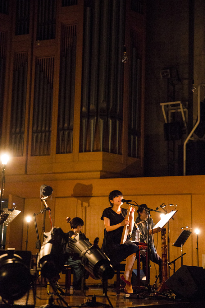 その後、Rayonsの曲が3曲。彼女は2012年にソロ・アルバム『After the noise is gone』をリリースし、ゲスト・ボーカルにPredawnを迎えてからは、折に触れステージで共演し合う仲。「Waxing Moon」は、刺繍アーティストである有本ゆみこの個展『あまいおんな』のために書き下ろした曲の1つだ。自作の楽器を抱えて歌うPredawnの歌声とメロディは、どこかビョークを彷彿とさせる。「あたらしい人」と「It Was You」は新曲で、とりわけ「It Was You」は、プリファブ・スプラウトの“When Love Breaks Down”に匹敵する名曲。後半、ドラムが入って景色がパーッと変わった瞬間、震えるほどの感動を覚えた。