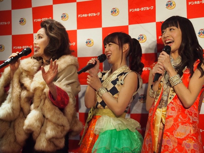 11月19日深夜、デヴィ夫人とCheeky Paradeから20歳の関根優奈と渡辺亜沙美が、六本木ドン・キホーテに登場。ボジョレー・ヌーヴォー2014解禁カウントダウンイベントを行なった。