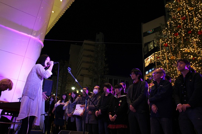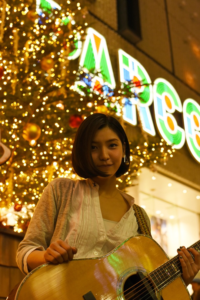 植田真梨恵、クリスマスツリーの下でライブパフォーマンス