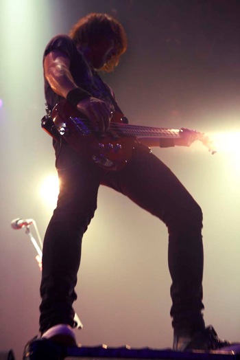 「赤坂、会いたかったぜ! 気が付けば、今日で4日目です」──そんなMCに観衆は声をあげるが、Jにとってそれは充分ではない。いつものように「ここ(=ステージ)には声が届きにくい」と言いながら、「“こんな俺って居たんだ?”というくらいの声を」と呼びかけると、息の続くかぎり終わりのない歓声が響いた。初日から連夜披露されてきたタイトル未確定の新曲は、この夜も定位置の5曲目に登場。すでにその楽曲自体が育ち始めていると感じたのは、筆者だけではないだろう。しかも、この夜も楽曲の重複を最小限に抑えた演奏メニューが組まれ、「Endlessly, goes on forever」、「TWISTER」などを経ながら、「addiction」から「Endless sky」へと続く流れをもって、この夜のライヴの本編は着地点に至った。
