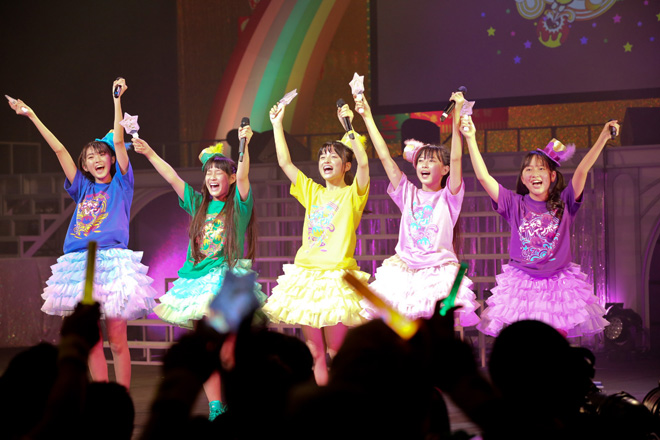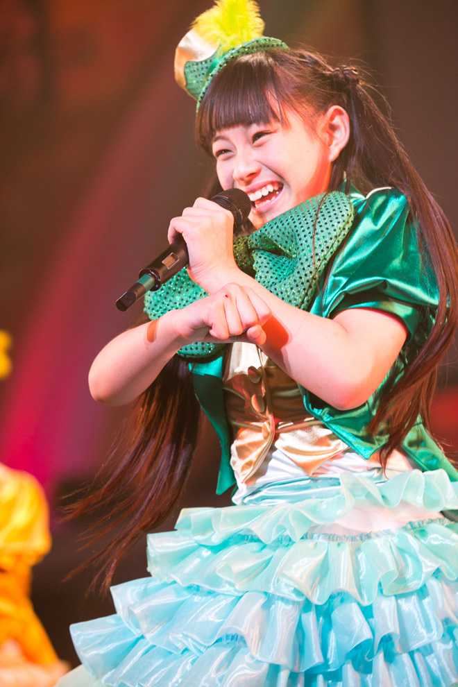 たこやきレインボー初となるユニット曲コーナーでは、トップバッターの春名が中央階段からキッズダンサーを伴い降りてくると、この日初披露された春名のソロ曲「まいっちんぐ☆まいまいマジック」を披露、まるでミュージカルのような「道子とクラリス」を歌い上げたのは彩木と根岸だ。首のイボに導かれ生き別れの姉妹が再会するというストーリー仕立てのこの曲は、たこやきレインボーの楽曲提供でおなじみとなった前山田健一が手掛けた作品だ。ユニット最後は堀、清井で「15のメランコリー」を大人っぽい楽曲をクールに歌い上げた。