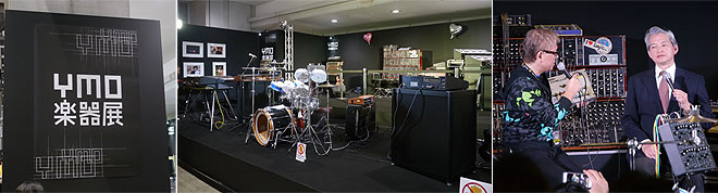 ▲イエロー・マジック・オーケストラのワールドツアー35周年企画として1979年ロスでの初の海外公演のライブセットを再現した「YMO楽器展」はデジタル楽器展示エリアの特設ステージに設置。21日に行われた1979年当時のYMOのステージ・テクニシャン丸山晴輝さんと松武秀樹さんによるトークショーでは、丸山さんが開発したキュー・ボックスの実機も披露。