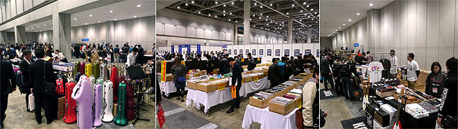 ▲今回から楽器を購入できる「販売エリア」が新設。数多くの楽器店が特価で楽器を販売。ギターや電子楽器をはじめ、管楽器、アクセサリー、アパレルなど多種多様なアイテムが揃う。メーカーによるアウトレットモールや日本楽譜出版協会による大量の楽譜販売も健在。