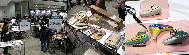 ▲親子で楽しめる「親子で手作り@ワークショップ」は楽器フェアおなじみの人気企画。ウクレレやカリンバ、ペイントオカリナなどさまざまな楽器を会場内のスペースで作ることができる。