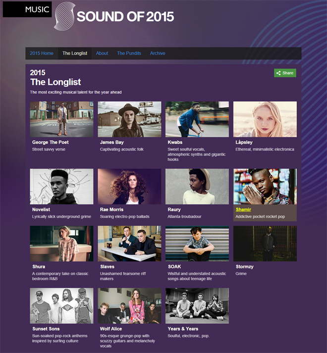 <Sound Of 2015>のロングリストは以下の通り。