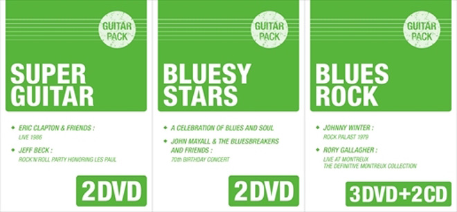 ロック・アーティストの代表的/定評ある映像作品を2本~3本をパックし、ディスカウント価格で登場するダブル・パック・シリーズから、新たに「ギター・パック・シリーズ」が12月17日に発売となる。