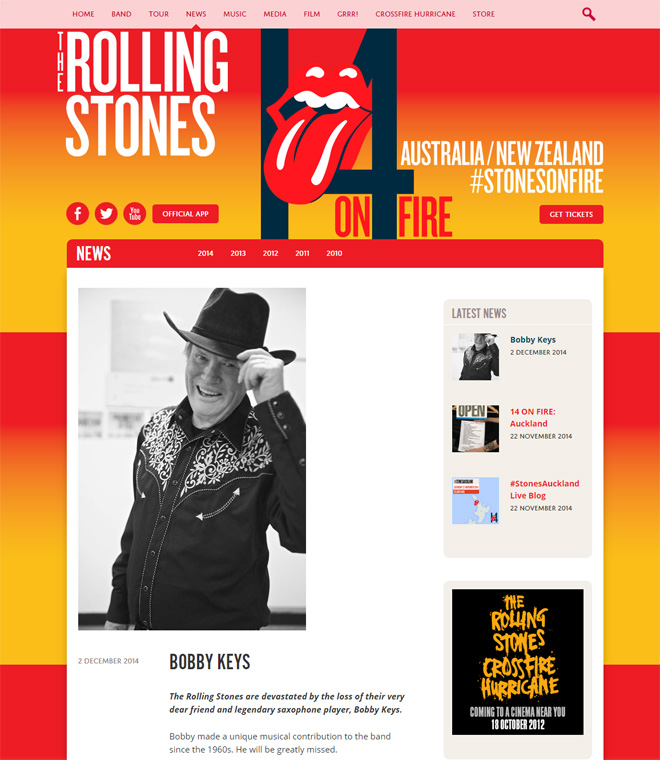 火曜日(12月2日)、ザ・ローリング・ストーンズのサックス奏者として知られるボビー・キーズが亡くなった。肝硬変により、米テネシー州の自宅で永眠したと伝えられている。70歳だった。