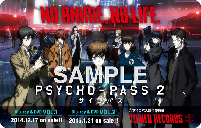 12月17日には『PSYCHO-PASS サイコパス 2』のDVD/Blu-ray発売を控えている同作。タワーレコードでは12月16日~2015年1月31日の期間、タワーレコード、TOWERmini、TOWERanime 全店、タワーレコード オンラインにて『TOWERanime ♡ PSYCHO-PASS サイコパス』と題した6つのコラボレーションを展開する。