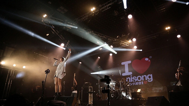 ライブは、SEとともに始まり「サンビカ」からスタート。会場が一気にヒートアップし、「キルラキルのオープニングテーマ、シリウス」というMCと共に会場は爆発的な盛り上がりを見せた。そのまま新曲「ツナガルオモイ」のカップリング曲である「Gladius」をハードなロックサウンドでパフォーマンス後、しっとりと「虹の音」、そしてギターのリフが印象的なロックチューン「KASUMI」、新曲「ツナガルオモイ」などバンド編成ならではの迫力の演奏で盛り上げた。英語でのMCを入れながら、自身の代表曲でもある「INNOCENCE」、そしてラストでの大ヒット曲「IGNITE」を披露、会場全体が大合唱に包まれながら、会場は興奮状態のままライブは終了となった。