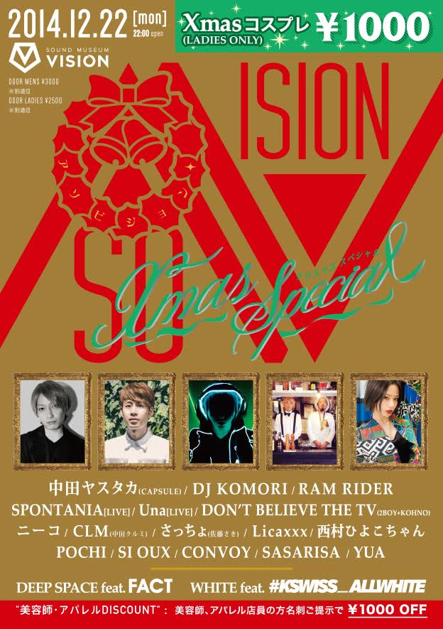 年に一度のクリスマス・スペシャル・バージョンとして届けられる今回の<ASOVISION>。ラインナップには音楽プロデューサーの中田ヤスタカ(CAPSULE)を筆頭に、DJ KOMORI、RAM RIDERらが登場。LIVEにはSPONTANIA、Unaが登場する。