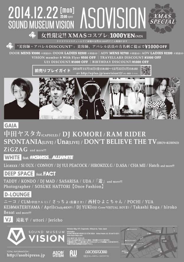 <ASOVISION>クリスマスSPに中田ヤスタカ、DJ KOMORI、RAM RIDERらが登場