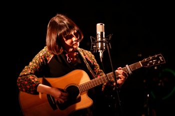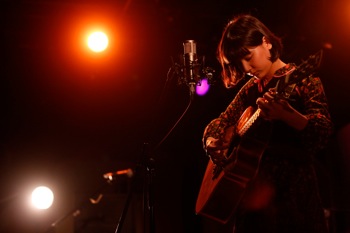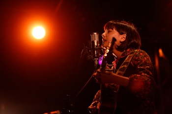 ポロポロとギターがつま弾かれる。7割り方埋まったフロアの観客を一瞬で静寂感のある凛とした空気に引き込む。説得力のある“語れるギター”だ。1曲目の「きみのうた」が歌い出される。ハスキーで湿り気があって、情の深い声。「ヤバいもの」を目撃しているのがすぐに理解できた。噂は本当だった。“私、好きな人がいるの”とそっと告白しながら、母親とのすれ違いを歌った「母さんと私」、見えない明日への逃避行(旅立ち)を歌う「はなれてごらん」が続くうちに“業と情の世界”がどんどん深まっていく。