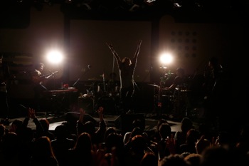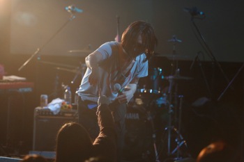 そしてクライマックス。隅倉がボーカルをとった悲痛な名曲「Untitled」は圧巻だった。西山の闇と大きな愛情がこんがらがったこの曲を歌うのは、本職のボーカリストでもなかなか指南の技だが、情念のこもった隅倉の歌がフロアを飲み込んでいった。そして、ステージには隅倉の隣で空になったマイクスタンドが、えも言われぬ存在感を醸していた。