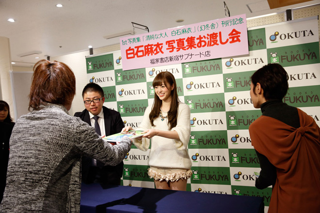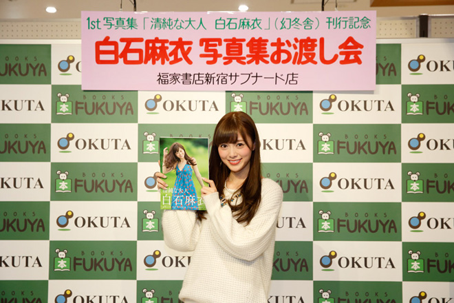 乃木坂46の白石麻衣がグループ初となるソロ写真集『清純な大人 白石麻衣』を発売、福家書店 新宿サブナード店にて発売イベントが行なわれた。
