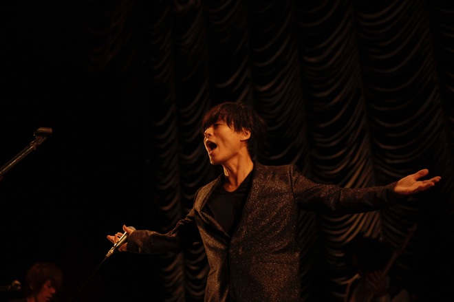 だからステージ上の中田裕二は、「昭和サイコー!」なんて叫ぶ。“LOVERS SECRET”では、「この曲、凄くトレンディーですから!」なんて曲紹介をする。“メロウ”も“トレンディー”も“ロマン”も、もしかしたら“歌謡”さえも、もうどれもが使い古された言葉かもしれない。だが、すべての物事において、新しいことや速いことや奇抜なことがいいわけでは決してない。そんな大義をも、この時ふと思い出した。さらに、音楽家にとって音楽というのは、他に見当たらないから自分で作るもの、自分にとってはこれがジャストなんだという意志を表現するために作るもの、である。その信念がなければ何も始まらない。だから常に、その活動には常にアナキズムを孕むという意味において、彼は本物の音楽家なのだとも思った。音楽シーンにおいて、中田裕二は今、間違いなくオンリーワンな位置に立っている。