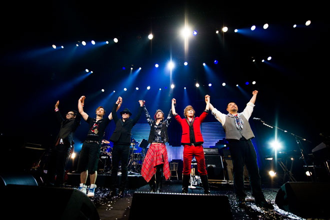 新しいことといえば、この日ジルのMCを大胆にフィーチャーしていたことも特記すべきことだろう。「2人になったやから“べしゃり”もがんばらな」と松岡に即され、懸命に長く話そうとするジル。「12月に入るまで俺たちの未来はどうなるんやろうって思ってたけど、今このステージに立てて幸せです」と話し出したと思ったら、その後はまったく関係のないカレーの話へと乱暴に展開(笑)。みんなでジルの好きなカレー屋に行ったとき「初めて手食をしたんやけど。手で食べたら手の体温が加わるんか、味が変わったで!」と関西弁丸出しのトークで場内を一気に和ませた。