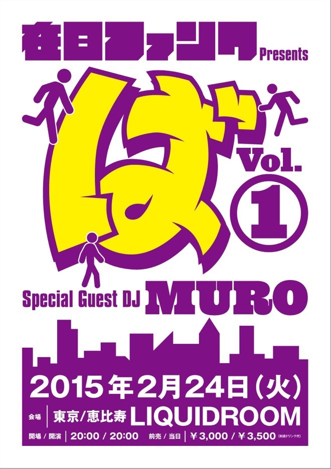 在日ファンクが2015年2月24日(火)に恵比寿LIQUIDROOMにて開催する自主企画<「ば」vol.1>のゲストアーティストにMUROが出演することが発表された。MUROは、当イベントにゲストDJとして登場する。