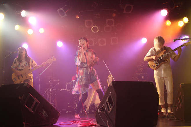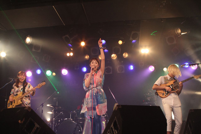 2013年と同日同場所で開催された<第2回チームあわてんぼうプレゼンツサキドリ!!>と題されたこのイベントは、今年ではなく“来年のクリスマス”を一足早くファンと一緒に盛り上がろうとするもの。1年先の行事をやってしまおうというあわてんぼうな企画に賛同したファン200人は、オープニングからもはや大盛り上がりだ。1曲目の「Amie」からアップテンポのロック調の曲が続き、途中未発表の新曲「Bambi」や珠玉のバラード「1つだけ」をセンターステージで歌うモリユイの声に、全員が魅了された。