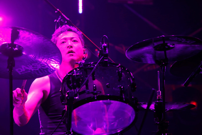 曲終わりで田澤孝介がステージからはけると、各メンバーのソロ・コーナーへとつながっていく。まずはIKUOがスラップ、速弾きなどをはじめとする、多彩なベース・プレイを披露。続いて、それだけで曲になってしまうようなメロディアスな都啓一のキーボード・ソロ。そこにYUKIのギターがカッティングで加わり、そのまま泣きのギターフレーズを織り交ぜた速弾き満載のギター・ソロへ。そして、ジャズ・テイストの4人のインスト演奏を経て、Sakuraのドラム・ソロにつながっていく。いろいろなリズム・パターンを駆使して打ち鳴らすドラムスにあわせて、観客から自然発生的に手拍子が沸き上がり、Sakuraも嬉しそうだ。このソロ・パート以外にも、各プレイヤーの短いソロを盛り込んだ楽曲が何曲かあり、テクニカルなメンバー揃いであるRayflowerのライヴの大きな特徴になっている。