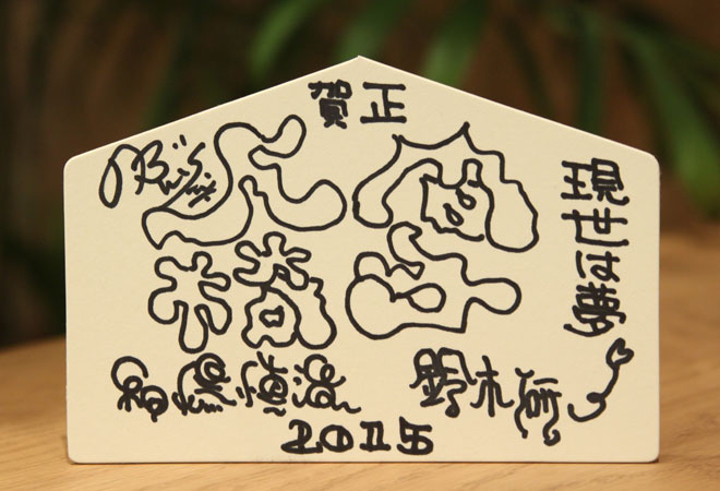 12月3日にリリースされたベストアルバム『現世は夢~25周年記念ベストアルバム~』のタイトルである“現世は夢”のメッセージ入り絵馬です。人間椅子は、2015年1月20日より東名阪ツアーを開催。ファイナルは1月24日の渋谷公会堂公演となります。
