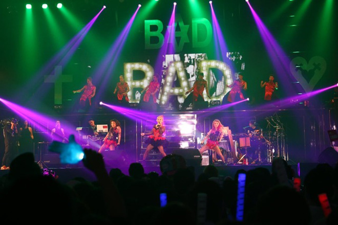 12月31日のインテックス大阪にて、全国19カ所21公演に及んだMINMIの<MINMI LIVE TOUR 2014 “BAD”>がカウントダウン/ファイナル公演を迎えた。豪華なゲストアーティストのパフォーマンスあり、MINMIのセルフプロデュースの演出も盛りだくさん、衣装は和風衣装含めて7通りと華やかなカウントダウンライブとなった。