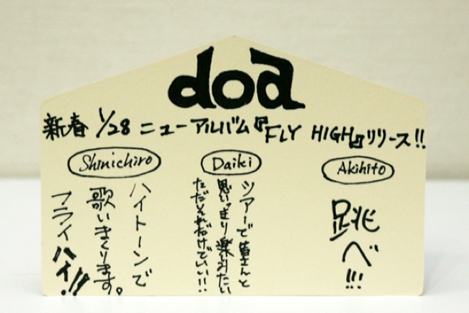 9thオリジナルアルバム『FLY HIGH』は、強くポジティブな“今からだって高く飛べる!”というメッセージを詰め込んだ作品だ。特に同世代の大人たちへ向けた応援ソングが胸を熱くさせる仕上がりとなっている。なお、2月7日よりニューアルバムを引っ提げたツアー<doa LIVE Tour 2015 -FLY HIGH->をスタートする。